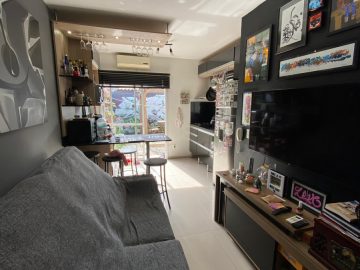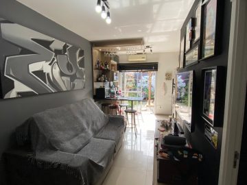 Com 46m² de área privativa, este aconchegante lar oferece 2 dormitórios, móveis planejados, massa corrida nas paredes, perfeito para acomodar sua família com conforto. Desfrute de momentos relaxantes na sala e prepare suas refeições na prática cozinha americana. O banheiro atende às necessidades do dia a dia com funcionalidade. Além disso, conte com uma vaga de garagem em frente para sua comodidade.