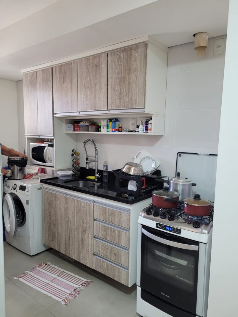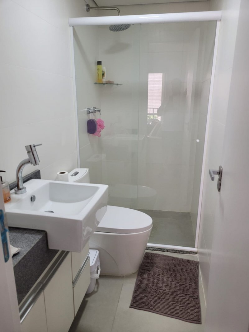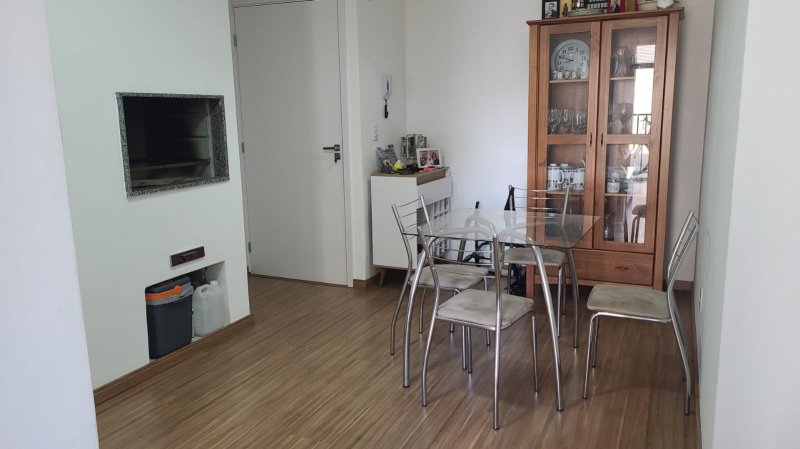 - Apartamento andar baixo, 02 dormitórios, sendo 01 suíte, cozinha americana, sala, banheiro com box de vidro, piso flutuante, junker, split, sacada, churrasqueira e estacionamento.