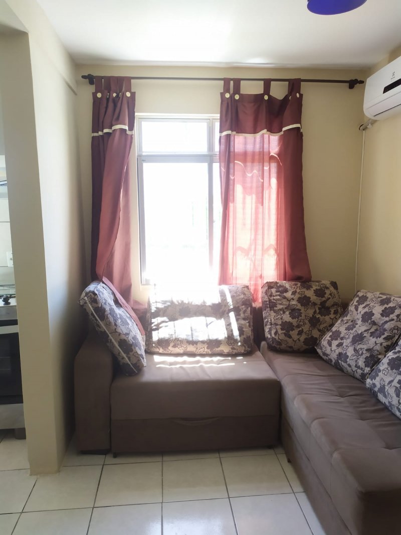 - Apartamento térreo, 02 dormitórios com cama, rack e guarda roupa, cozinha americana com móveis planejados, geladeira, fogão, sala de estar com sofá, split, painel para tv e vaga de estacionamento.