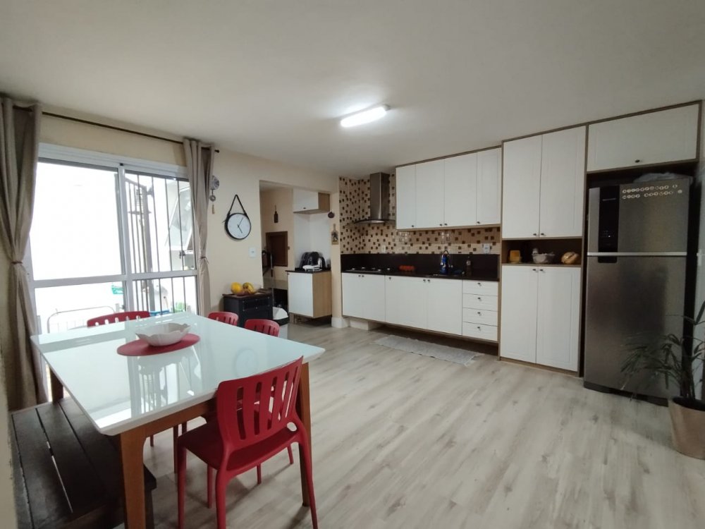 - Apartamento térreo, 03 dormitórios, sendo 01 suíte, sala de estar, cozinha com churrasqueira e móveis planejados, pátios e 02 estacionamentos cobertos.