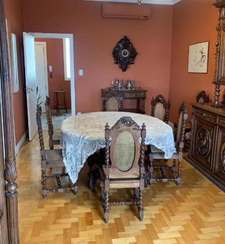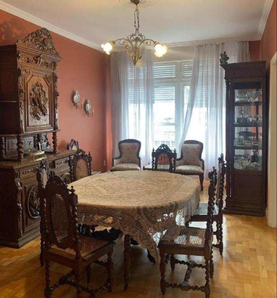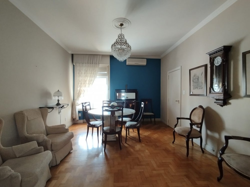 - Fino apartamento, posição solar norte, com ventilação cruzada em todas as peças. Átrio em mármore preto e branco, duas amplas salas, de estar e de jantar, lavado, três dormitórios sendo duas suítes, copa, ampla cozinha, lavanderia, banheiro auxiliar e dependência de empregada. Três Splits, aquecimento de água por Junker, gás encanado. Dois elevadores. Garagem para um carro.